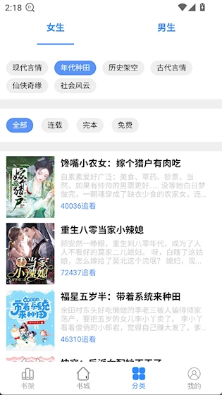 1、在书城和分类界面寻找感兴趣的作品进行阅读