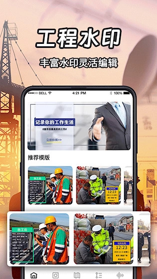 1、工程项目管理 适用于建筑工地、市政施工等需阶段性留证的场景,借助带水印的照片清晰记录工程进度,方便后期核验与责任追溯。