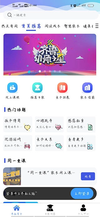 2、登录后首页显示教育资讯与亲子沟通方法。