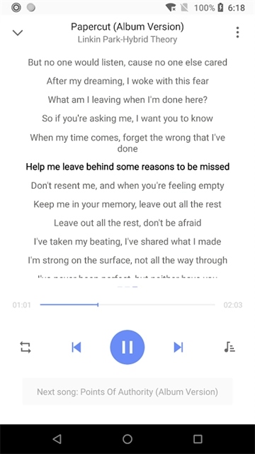 2、这款软件采用纯国产音乐播放器模式,界面简洁干净,干扰,国产音乐资源可快速播放且均配有对应歌词。