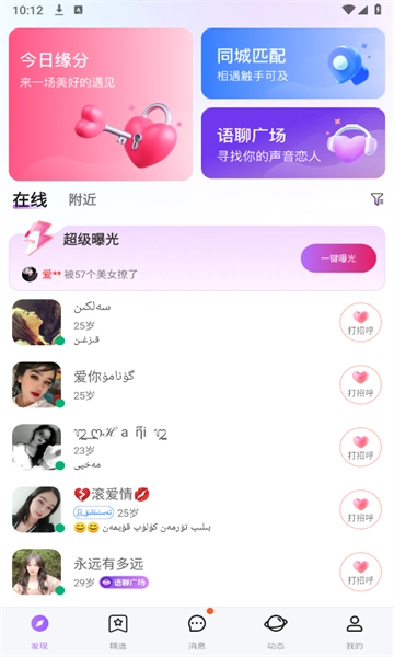 在主页面的“今日缘分”“同城速配”“语聊广场”等板块里,能快速开展匹配交友活动。