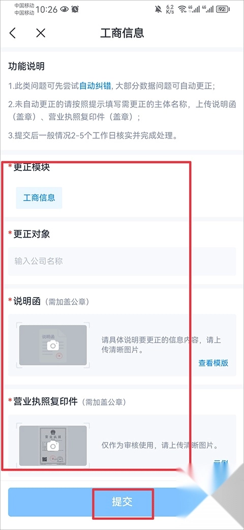 4、最后把信息补充完善后,点击提交按钮就可以了,提交之后通常会在2到5个工作日内完成核实与处理工作。