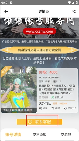 3、找到你想购买的账号后,和卖主进行交易,若有问题请点击联系客服。