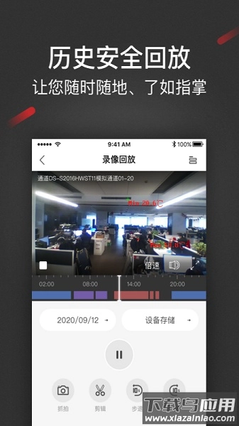 4.录像回放具备定位、日期切换、存储位置选择、抓图、剪辑、暂停/继续、倍速播放、前进/后退以及声音控制等功能;