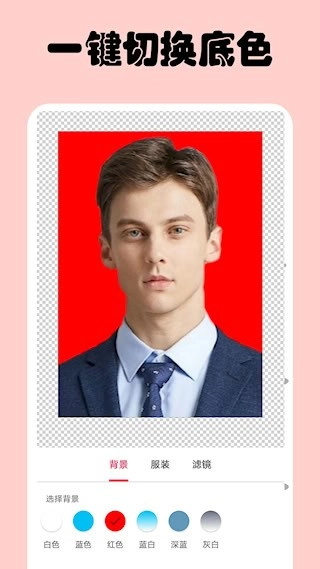 3、 证件照换底色:拥有红、白、蓝、渐变灰等多种底色可供挑选,用户能依据不同证件照的具体要求,一键完成背景色的更换,简单便捷地打造出多样风格的证件照。