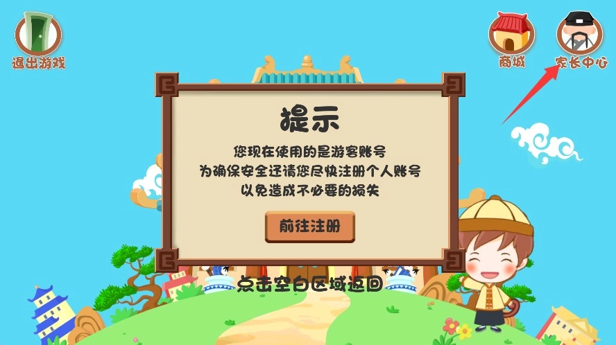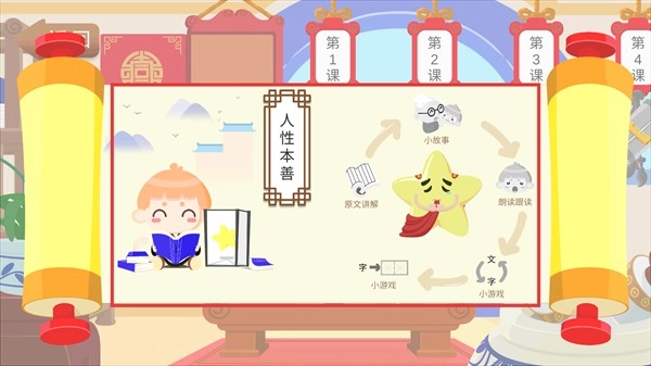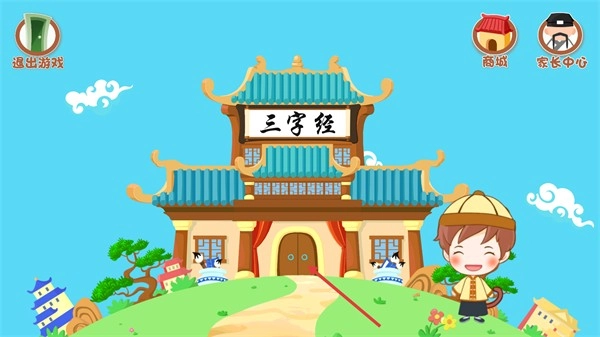 进入界面后,点击【三字经】建筑的门,就能进入对应的学习模块。