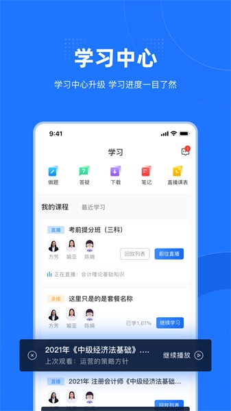 1、课程资源丰富:涵盖众多专题课程,对重点难点进行深度剖析;具备高清录播与倍速播放功能;