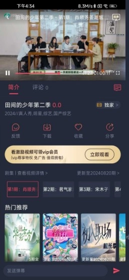 3、你可以任意挑选一个自己喜欢的综艺打开,这里拿“田间的少年第二季”来举例,点击就能播放。