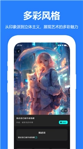 4、AI绘画的表现形式打破了人们对传统绘画的固有认知,能够创作出令人满意的作品,而这一切都可以通过本软件来实现。