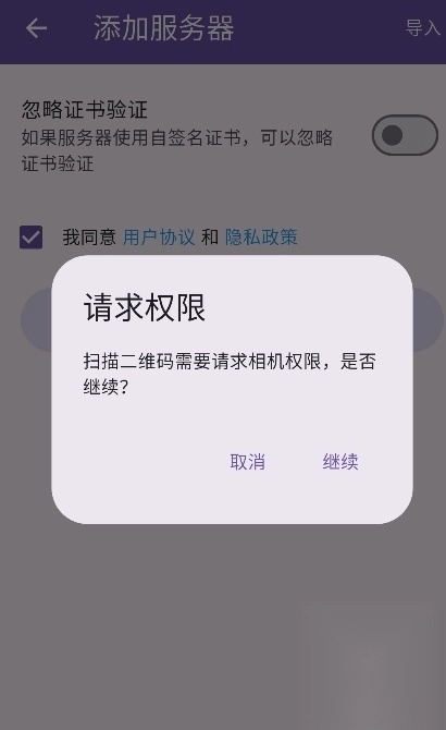 5、扫描页面上的二维码即可添加服务器。