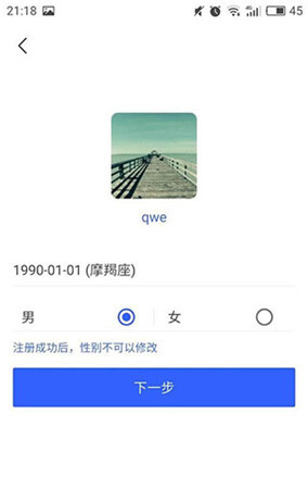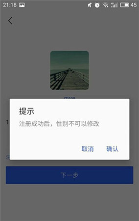 4、这里会着重提示“注册成功后,不允许修改性别”