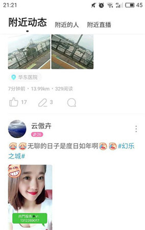 3、也能查看附近的动态,浏览其他人发布的图文内容