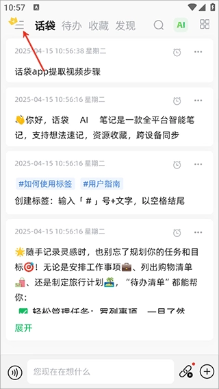 2、一站式记录:无论是文字、图片、视频、音频、链接还是待办事项等,都能随时记录;收藏功能还可将各平台内容汇聚到话袋,轻松解决零散收集的问题。