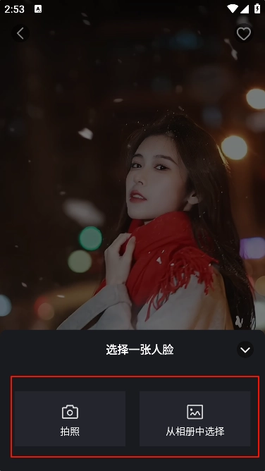 3、进入后按照提示拍摄或上传个人照片,此处我以雪景照片为例