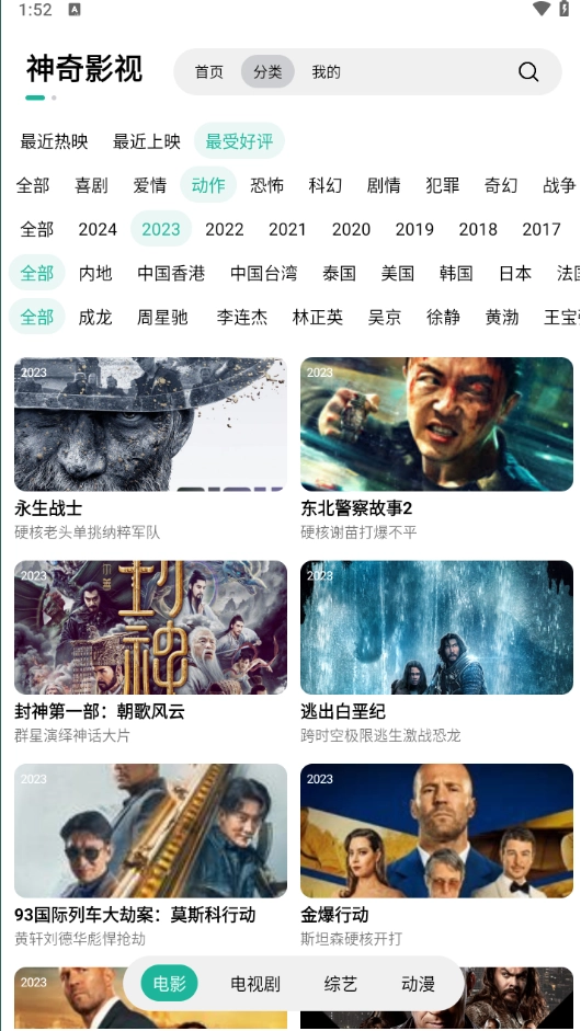3、点击分类后,可查看电影、电视剧、综艺、动漫等各类内容。