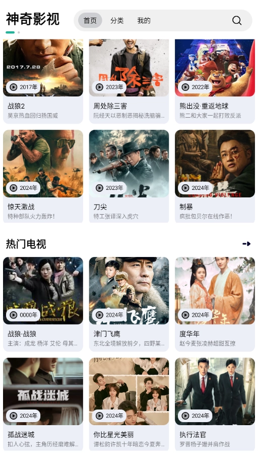 4、用户可以通过分类以及搜索功能快速查询影片。