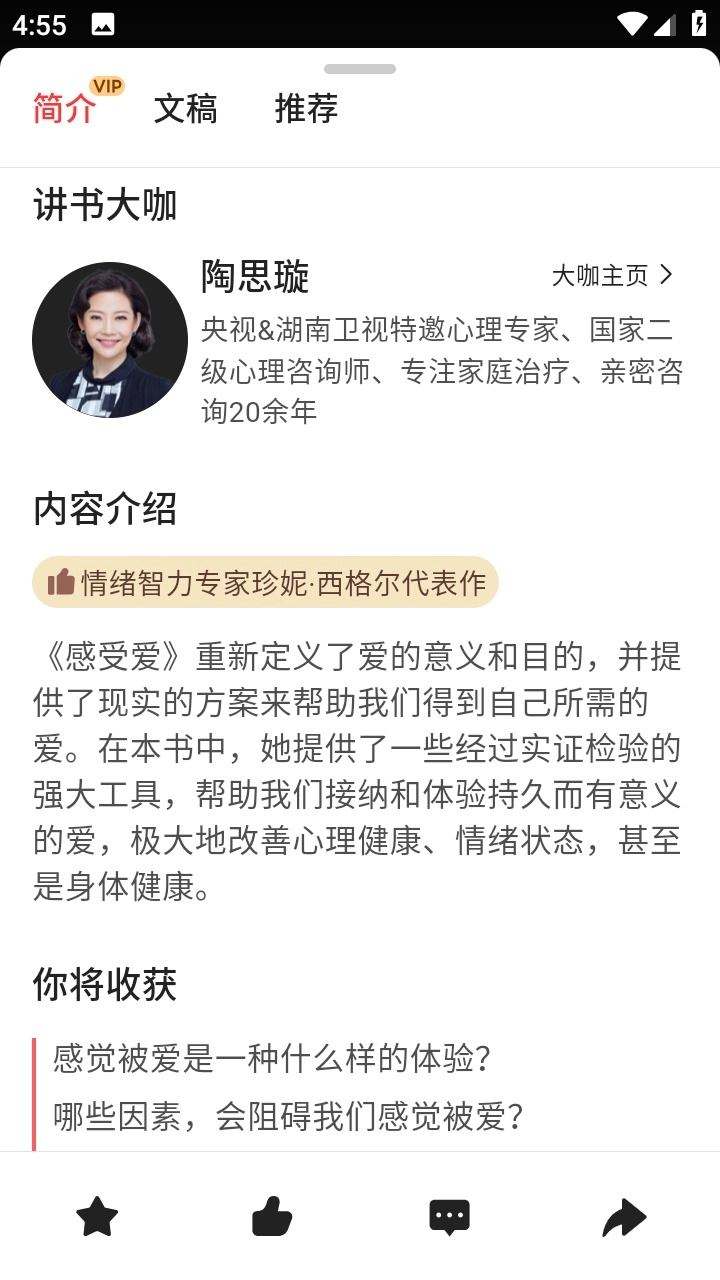 3、大咖精讲好书:靠谱讲书平台会邀请各领域的专家与大咖,对优质好书进行深度精讲。通过将多本好书有机串联,助力用户在收听过程中构建更立体、全面的知识体系。这种专业的精读模式,能帮助用户更深入地领悟书籍精髓,有效提升学习效率。