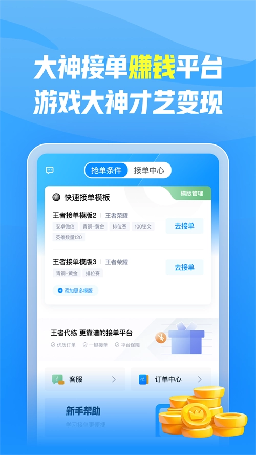 3、日常可以让代练大神筛选各类代练订单,并及时接取。