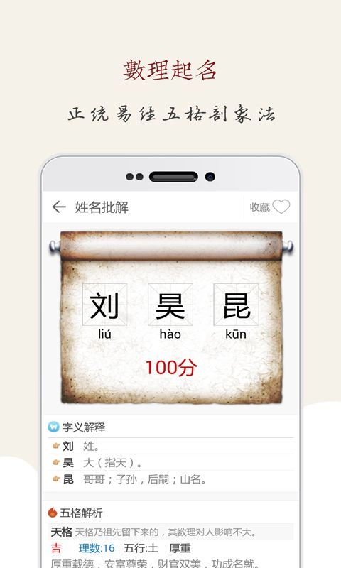 起名大师,是一款相当实用且优质的取名工具。一个出色的名字对人的一生有着重要影响,而取一个好名字也需要一定的知识和技巧。用户能够借助这款软件,结合出生时间、八字、五行等要素来进行取名,软件会为用户推荐适合宝宝的名字,帮助弥补命格中的不足。此外,用户还可以收藏自己喜欢的名字,并一键分享给亲友,供他们参考。欢迎有需求的朋友们前来使用!