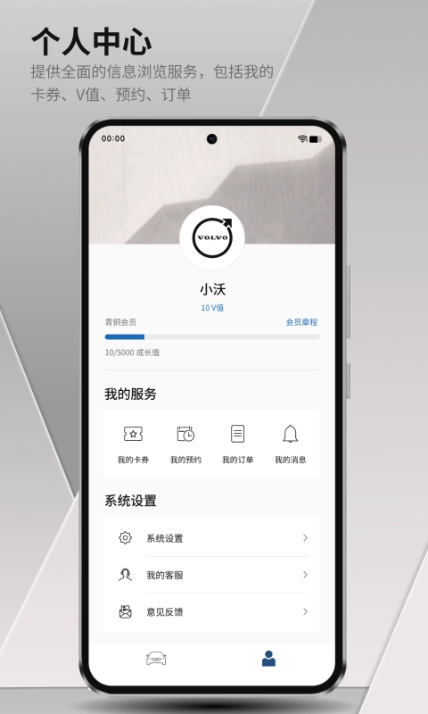 提供全面的信息浏览服务,涵盖我的卡券、V值、预约、订单、消息等内容。