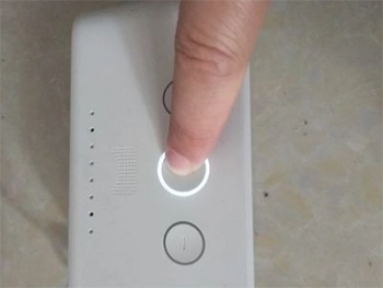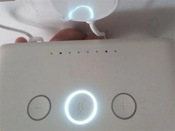 6、长按天猫精灵顶部的中间按钮,直至其变为白色后再松开手指;