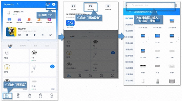 天猫精灵联网后,开始设置沃克斯扫地机器人。
