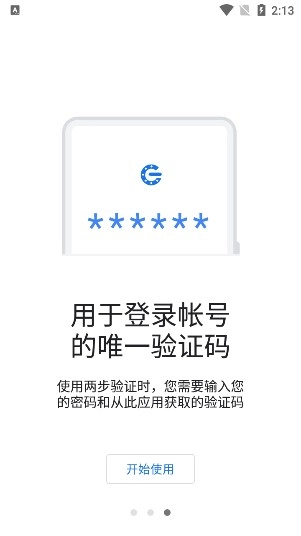 1、打开谷歌身份验证器后点击【开始使用】。