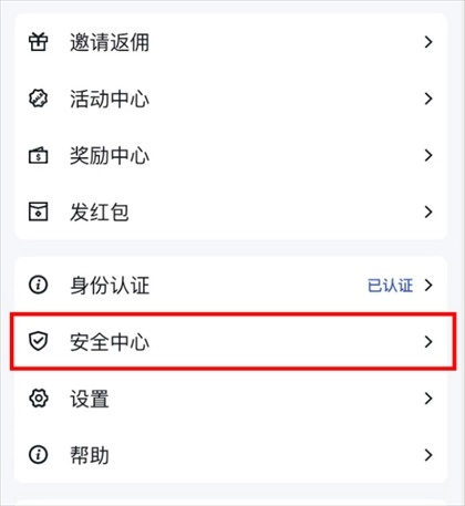 1、第一步是打开指定的个人中心,接着点击页面下方的“安全中心”选项。