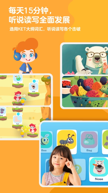 每天仅需15分钟,孩子们就能在听、说、读、写各方面得到全面提升,还能畅享丰富多样的学习资源。