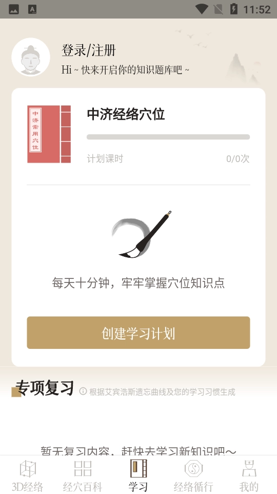 7、【学习题库】:配备丰富的经络穴位学习题目,借助科学的学习记忆方法,助力用户记忆并掌握相关知识点。