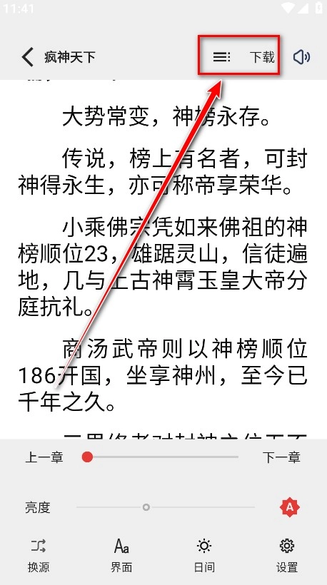 6. 可以看到下方有章节切换、亮度调节、换源等功能,大家可以根据需要点击使用。