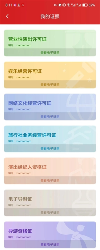 文化和旅游领域的经营主体与从业人员,在通过应用完成实名实人认证后,即可申领电子证照,并能使用扫码亮证、查看原件、查询详情等功能;若对证照信息存在异议,还可在线上提出纠错申请。