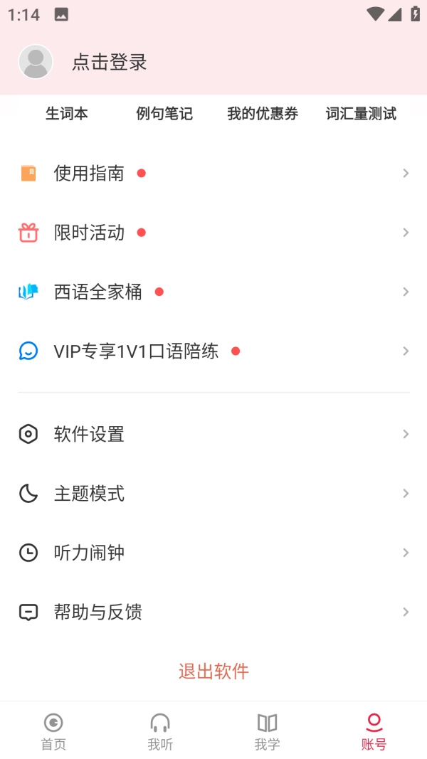 6、闹钟功能:当起床闹钟响起时,会自动为你播放西班牙语听力内容。