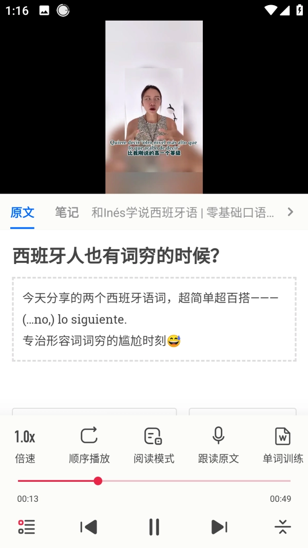 4、跟读训练:逐句跟随语音播放进行朗读,以此锻炼标准且流利的口语。