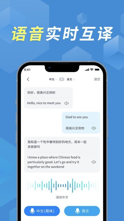 3、体验炫酷的同声传译功能,实时翻译,让聊天变得更轻松。