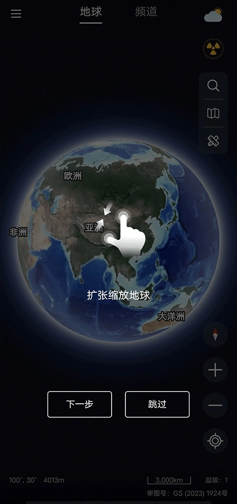 2、然后双指可缩放地球。