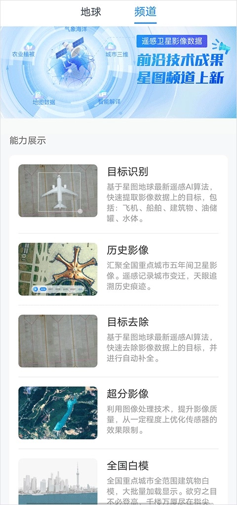 4、频道界面提供目标识别、历史影像、目标去除等多种玩法供用户查看体验。