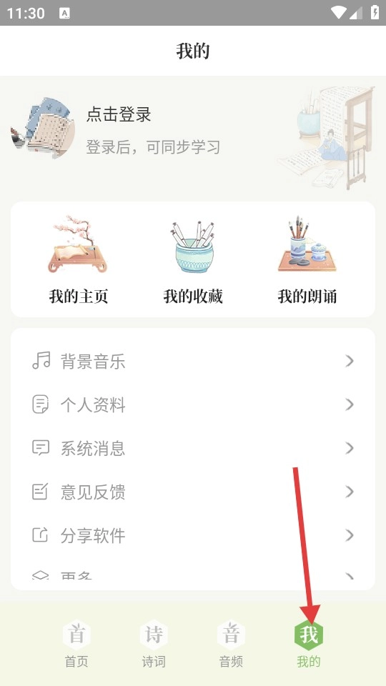 4、点击进入【我的】页面,你可以选择登录账号来同步学习进度,还能在此设置各类功能选项。