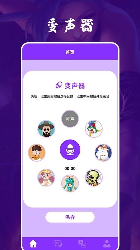 进入主页后,用户能看到一个变声器,点击旁边的音效就能使用。
