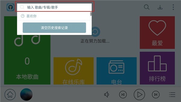 3、只需在搜索框内输入自己想听的歌曲、专辑或者歌手名称就行。