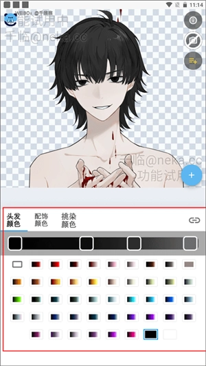 4、等你再次打开调色板时,就能看到可以对头发、配饰和挑染进行调色了。