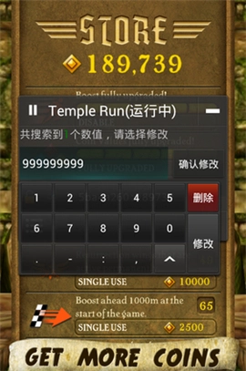 不然修改就会失败!比如《神庙逃亡》这款游戏,输入9个左右的“9”是可以的,要是输入更多就不行了!具体得根据实际情况来定!
