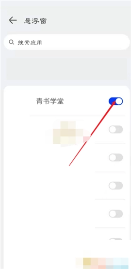 5、最后在应用列表里找到青书学堂,也能通过搜索功能查找,之后点击其右侧的按钮,开启权限就可以了。