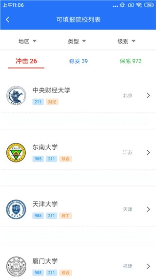 3、系统会依据你所填写的分数,筛选出可供填报的院校名单。