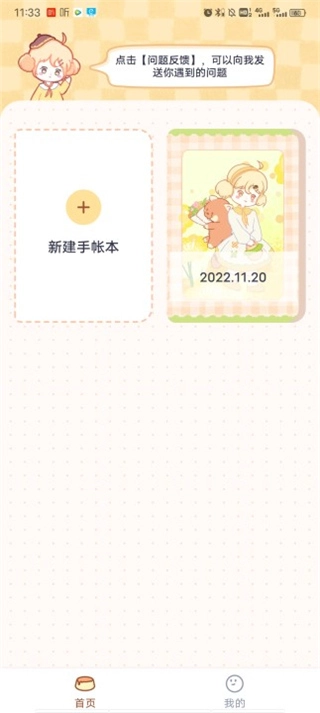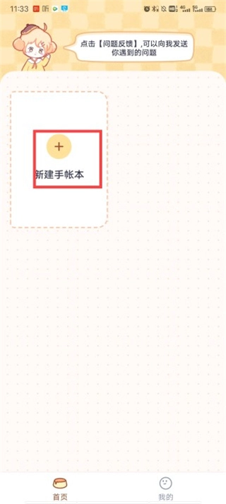 1、先在本站打开布丁手帐,进入软件界面后,点击创建手账的按钮。