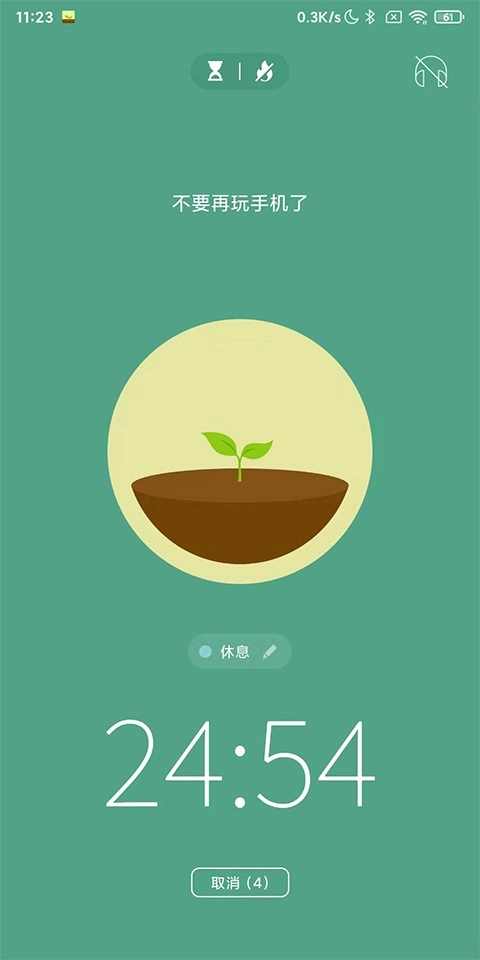 1、打开本站的forest专注森林应用,进入后,首先看到的是一棵小树和下方的时间倒计时。