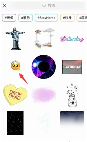 4、进入贴纸页面,在页面里选择喜欢的贴纸。