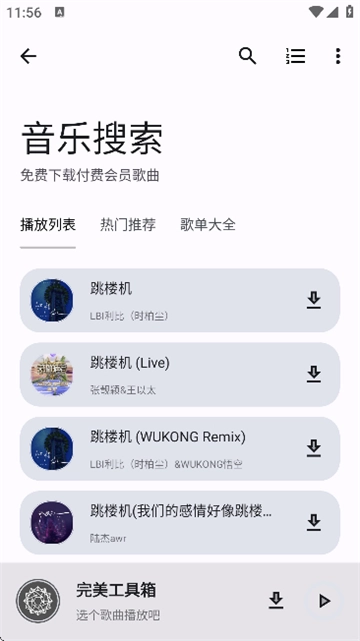 3、点击进入音乐搜索功能,接着在搜索框中输入歌曲名称或歌手名字,即可实现快速搜索。