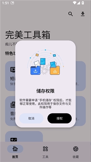 完美工具箱的使用方法: 1. 在本站下载软件,点击授权后进入首页。