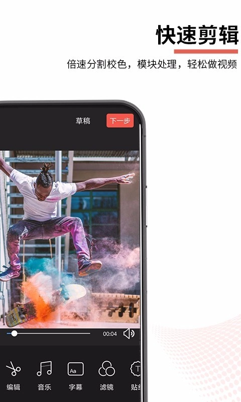 2、提供裁剪、变速、转场等丰富的视频编辑功能,助您更高效地创作视频内容;还有多款当下流行的动态贴纸,喜欢就能直接使用,从此无需再为找不到合适的贴纸而烦恼。